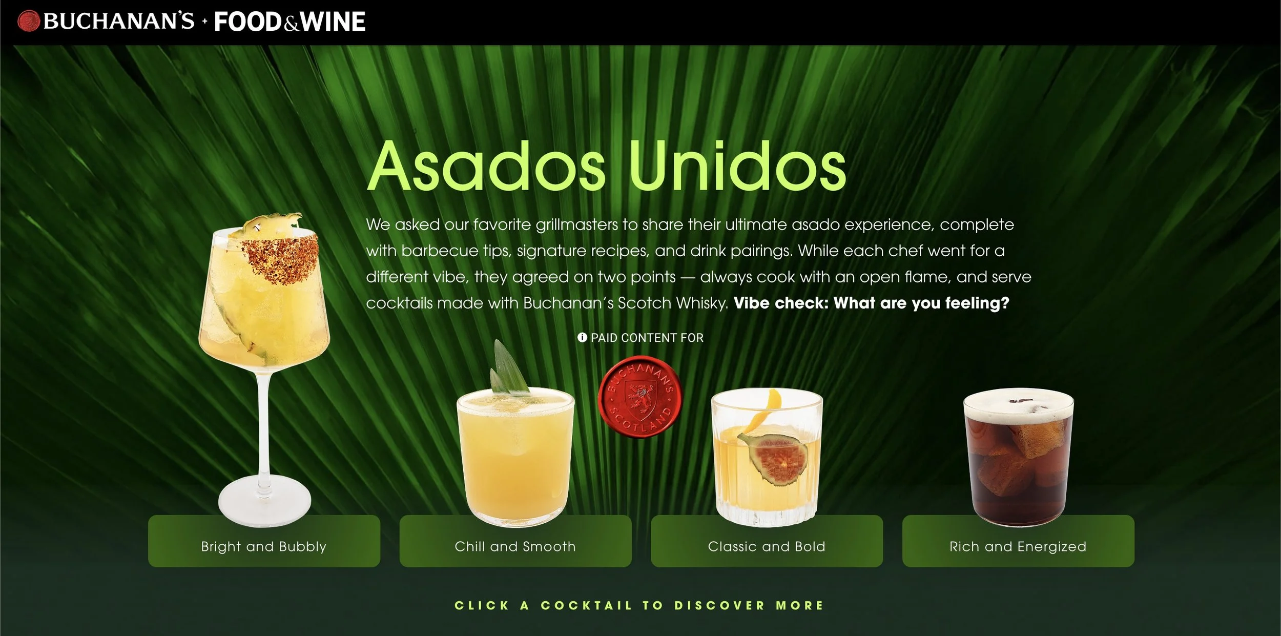 In partnership with Buchanan’s and Food & Wine, creating custom content through custom videos, talent partnerships, and digital content that extends the clients existing campaign of Asados Unidos.